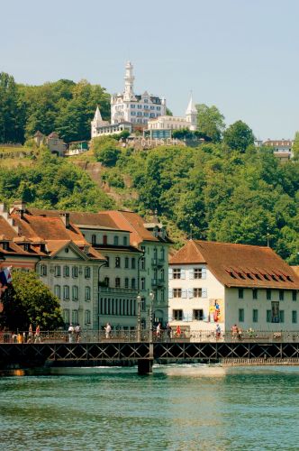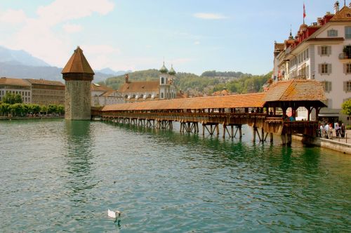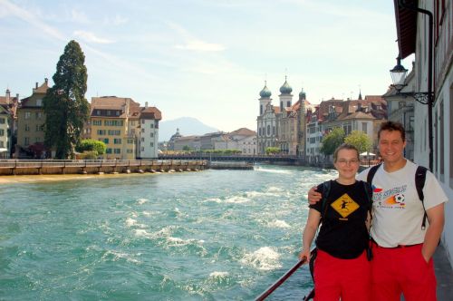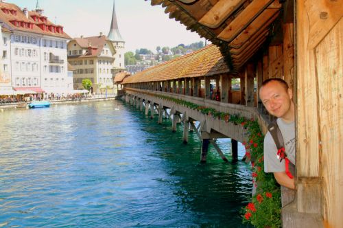 Náš hostitel vykukuje z krásného mostu v Lucernu