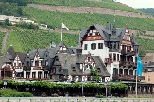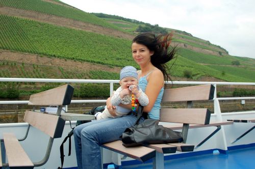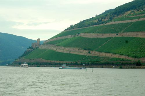 Naše první kroky tedy vedly na projížďku lodí po Rýnu s vyhlídkou na všechny možné více či méně krásné zámky a nekončící vinice.