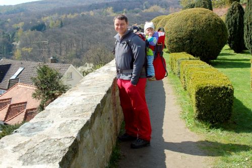 V Kronbergu nebyla Eli na tůru nijak zvlášť naladěná, zamířili jsme směr parčík, kde se vyřádila lezením na kopečky a do schodů do zahrádkářské kolonie... Postupně jsme se tímto stylem dostali až k hradu, kde jsme k našemu údivu míjeli rytíře a sličné dámy v dobových róbách. Zanedlouho jsme zjistili, že se shodou okolností koná hradní den otevřených dveří, což jsme nemohli nevyužít a šli prozkoumat útroby Kromberského hradu. Hned v první místnosti Otíka zarazil přízvuk sympatického průvodce, načež se podíval na cedulku, na níž stálo "Jiří Sobota". Zbytek velmi zajímavých faktů nám již sdělil česky, což bylo zejména mně přjemné. Eli však bohužel nezajímal ani německý ani český výklad, museli jsme se tudíž vydat na samotnou prohlídku.