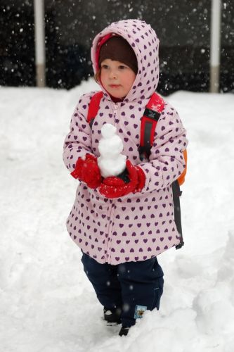 Sněhulák Head staví sněhuláka Eda.