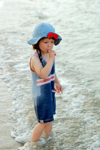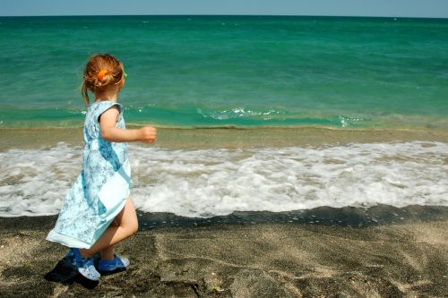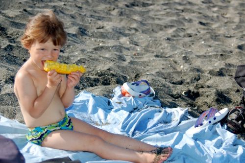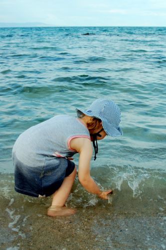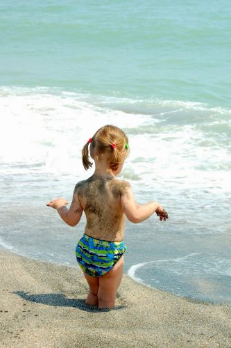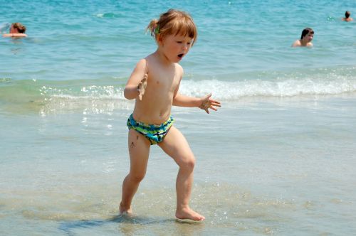 Elouš chytá první vlnu. Záhy následuje sprcha slané vody a vyděšený úprk s brekem zpět na suchou zem.
