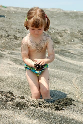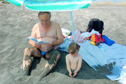 Taťko, nikam nechoď, ať po tobě můžu mrsknout ten písek!