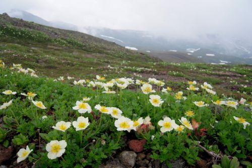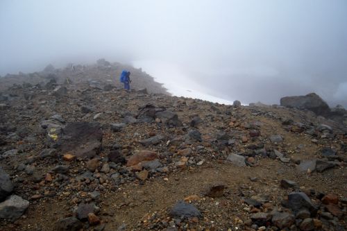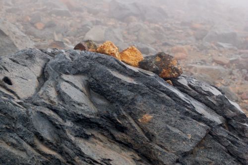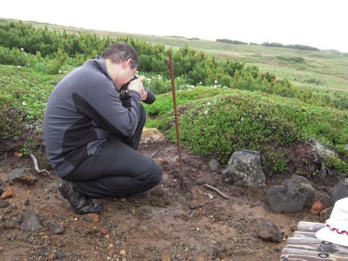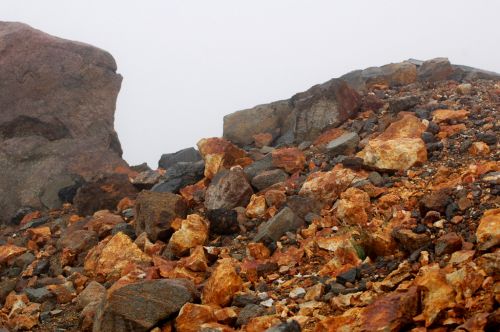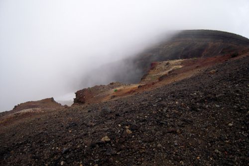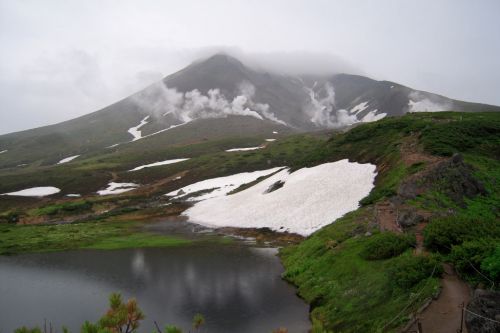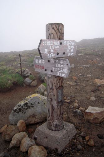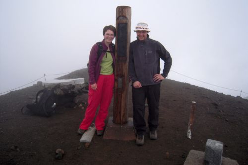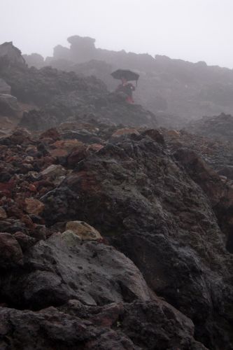 Po shlédnutí krás v blízkém okolí lanovky jsme zamířili k nejvyššímu vrcholu Hokkaida. K našemu nadšení lezlo nahoru docela málo lidí a mezi nimi jsme nenatrefili na žádného cizince. Po cestě jsme obdivovali rozmanitost a pestrobarevnost kamenů, květin a občas i výhledů. Nutno dodat, že počasí nám moc nepřálo, ale vzhledem k tomu, že se na horách mění rychle, tak jsme si užili mlhy, deště, větru, sluníčka i bouření. Jako největší ostuda jsem lezla nahoru s deštníkem, což už budu mít na talíři asi do smrti smrťoucí. Na vrchol jsme vylezli docela rychle a nějak jsme nevěřili, že už je to ono. Tam jsme se seznámili se všemi přítomnými a jedna paní se s námi i šlechetně podělila o jakési sojové bonbony. Otík jej nevděčně odmítl neváživšiv si vynaložené námahy oné štědré paní. Nicméně musím konstatovat, že fakt nebyl moc dobrý, ale radost mi udělal :).