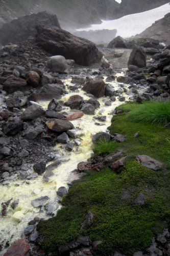 ... tentýž potůček z druhé strany (žlutý, tudíž již se sírou)
