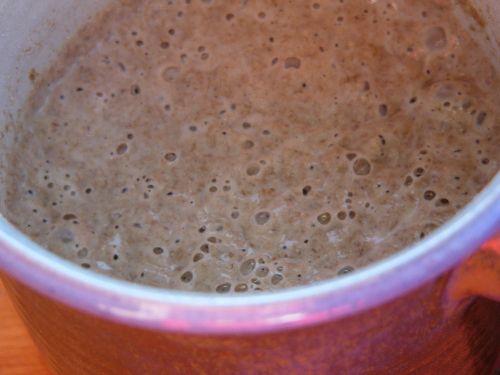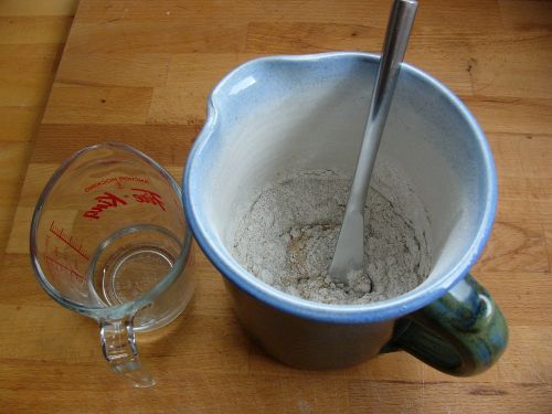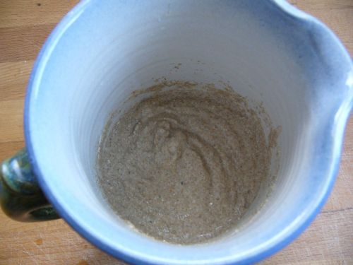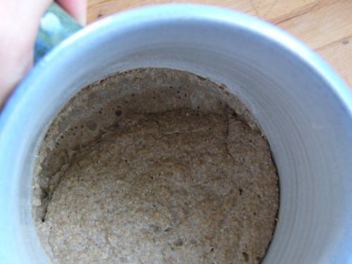 Docela dlouho jsem si lámala hlavu s tím, v jaké nádobě nechat kvásek prdět. Vyzkoušela jsem všelico až jsem došla ke genialní nádobě. Poproste vašeho keramika- já prosím Marka Zamazala ať vám udělá veliký hrnek s hubičkou o objemu alespoň 1,5l. Jeho výhody tady nechci vyjmenovávat, bylo by to na dlouho...