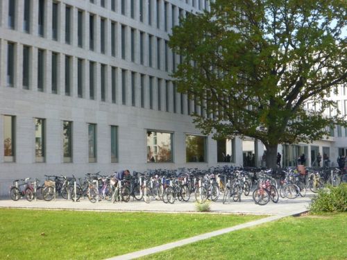 A takhle to vypadá před knihovnou resp. budovou Jura a Wirtschaftswissenschaften