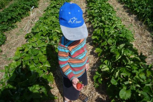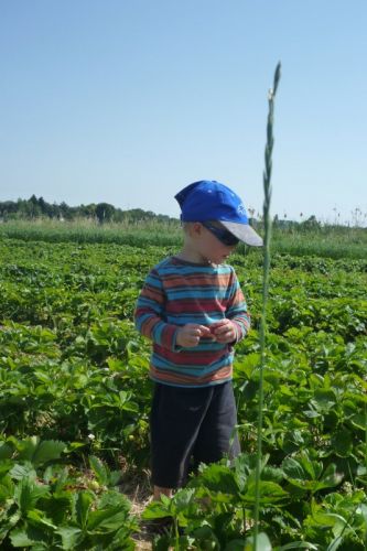 Červen se nám přehoupl do své druhé poloviny a v Egelsbachu vedle letišťátka konečně začaly dozrávat jahody. Vzhledem k tomu,že se rtuť teploměru šplhala do astronomických výšin, na celém poli jsme byli sami. Jáchym se letos ukázal, jako kvalitní sběrač pozorovatel. Zatímco se mu pod rukama košík plnil jak o život neunikl mu ani jeden větroň natožpak vrtulník. Eliška byla za teoretika, který místo aby sbíral bloudil mezi řádky a hledal, kde jich je zralejch nejvíc. Kromě jahod jsme ukořistili letošní první celer, květák a brokolici :)