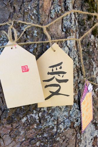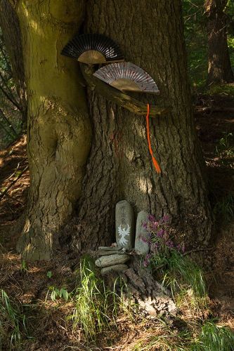 Kolem posvátného kaštanu jsme společně a obřadně navinuli provaz šimenawa, na který si posléze každý z účastníků tábora přivázal svou destičku Ema se svým tajným přáním.