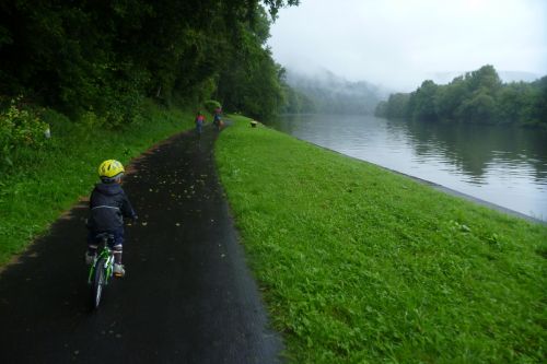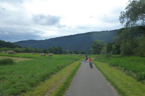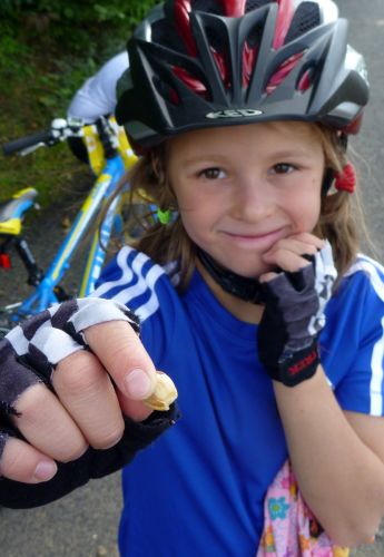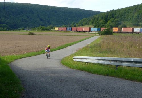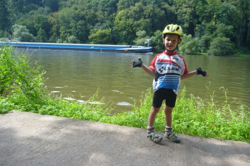 Stydím se za moje pochybnosti, jestli není taková "dovolená" trochu bláznovství. Jenže děti na takové věci nejsou moc malé a jsou nám skvělými učiteli, když jim to dovolíme. Abychom nepraskli pýchou, seslal nám bůh na cyklostezku pana Holanďana se dvěma dětmi na tandemu s lehokolem a vozíkem. Jeli z Lyonu a byli také skoro v cíli. Pani manželka se vydala domů s dvěmi nejmladšími o dva dny dřív od německých hranic vlakem. Dali jsme se do řeči, když chtěli Jáchymovi poskytovat první pomoc. Vymáznul se, když zapomněl oči na trati s Regiem...