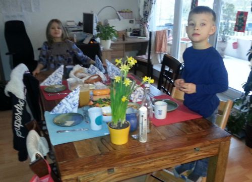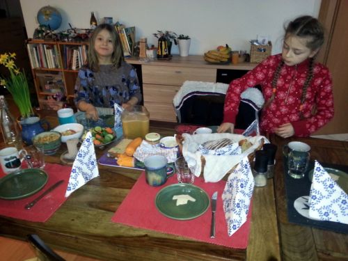 K mému překvapení neseděly děti pod stolem s balíčkem sušenek, ale CHYSTALY SNÍDANI!