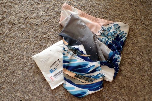 Plavky s Hokusajovou Fudži při cunami na míru i pro mamuta zrovna, když píšu o dřevořezech ukijo-e. Tak symbolické, že jsem se musela podělit!