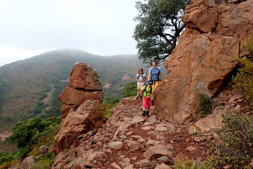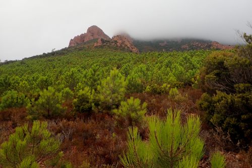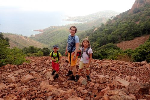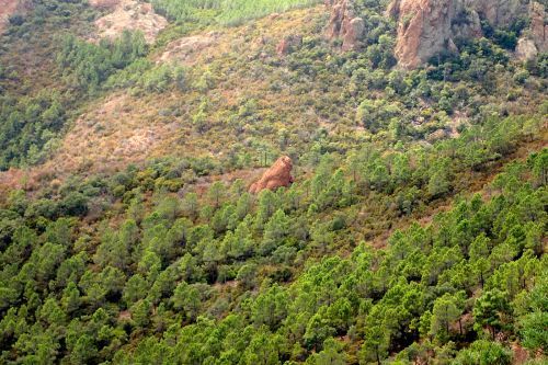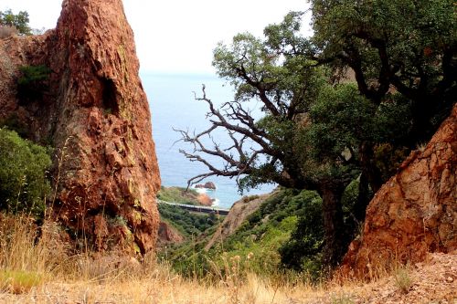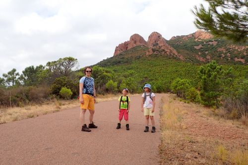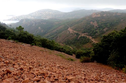 Druhy den jsme se vypravili na prochajdu do pohoricka Massif de l'Esterel. Jedna se o masiv na pobrezi, jizne od Cannes. Wikipedia tvrdi, ze je z cerveneho porfyru. Cerveny teda je. Tak nevim, proc je Azurove pobrezi azurove. Plan stanoveny radou starsich, ze obehneme horu Col du St-Pilon kolem dokola, se nam nepodarilo splnit, zamotali jsme se hned na zacatku a nez jsme pochopili, kde jsme, bylo pozde. Ale i tak tam bylo moc hezky.