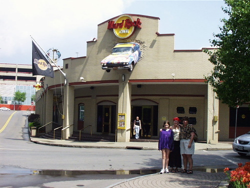 Po lodicce zacalo prset a dostali jsme hlad. Tak jsme si zasli na obet do Hard Rock Cafe. Dala jsem si Bolonske spagetky a pdivali jsme se na hadriky Cher a na kytaru Jimiho Hendrixe.