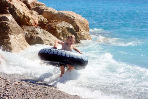 Jelikoz se nam z Esterelu nejak nepovedlo dostat se zpet do Nice za svetla, rada starsich na natlak rady mladsich rozhodla, ze se treti den pujde nejdrive k mori a az pote si, radne vymachani, naordinujeme osvobozujici prochajdu. Rada starsich taktez rozhodla, ze bude rada mladsich vyslysena a budou ji k mori porizeny nafukovaci bestie. Timto krokem byla cilena eliminace pozadavku, ze ted s nama musi jit tatka do vody. Nutno podotknout, ze to fungovalo velice dobre. Co vsak nebylo behem planovani domysleno do konce, je proces nafukovani nafukovacich bestii. Zde bylo skemrani rady mladsich tak intensivni, ze to nakonec tatka stejne vsecko nafouknul sam. Aspon bude mit velke plice.