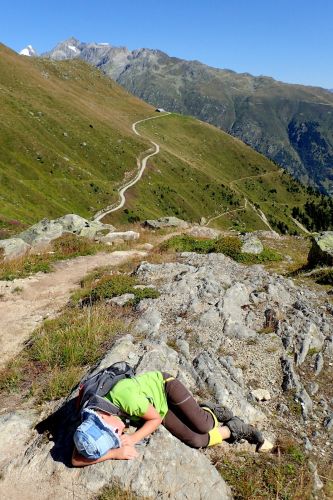 Posledni dovolenkovy den jsme se vydali na Eggishorn. Na Azurovem pobrezi jsme zdolavali kopce 300 nebo 800 m.n.m., ted jsme pred sebou meli temer tritisicovku. Absolutni prevyseni se od nasich predchozich francouskych prochazek zas tak moc nelisilo, cca 600 metru, ale to vysoke cislo, ty tri tisice, to decka drazdilo, a vo tom to je. Oproti planu jsme tentokrat nemeli vizi koupani v mori, o to bylo Eliscino remcani intenzivnejsi. Jako vzdy predtim, po case remcani preslo a my si uzivali spektakularnich vyhledu a decka se radovala ze skakani po kameni a z toho, ze si mohla v lete uplacat snehovou kouli.