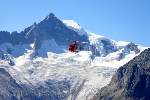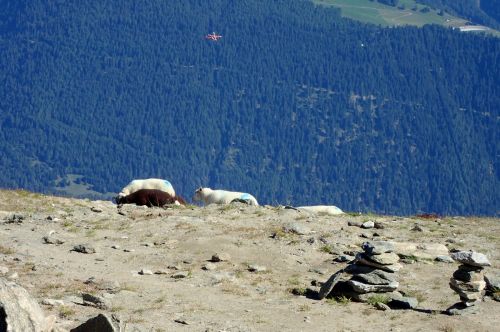 Kousek pod Eggishornem uvidela Ana, jak se jeden paraglidista (Eggishorn je udajne povazovan za Mekku svycarskych paraglidistu) zamotava do lana od lanovky. Chvilku pote, co jsme se vydrapali na vrchol, uz nahore pristaval vrtulnik, aby chudaka parasutistu a jeho zachrance vypustil. Vsecko dobre dopadlo, jestli ten paraglidista bude mit na litani jeste chut, jsme se nedozvedeli.