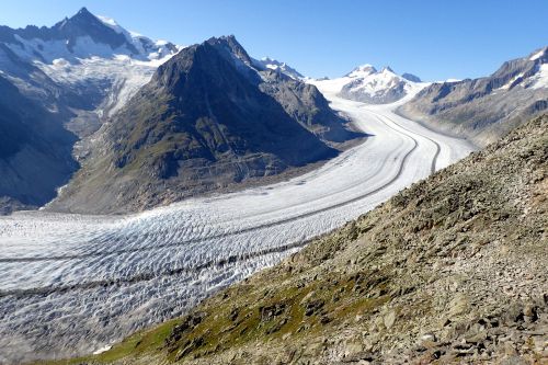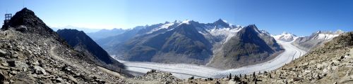 Z Eggishornu jsme si mohli prohlednout Aletschsky ledovec, nejvetsi evropsky. Tento ledovec je udajne zdroj pitne vody pro 4% evropske populace. V dalce byl dokonce videt Matterhorn, podle Wikipedie se na nem rocne v prumeru zabije 8 az 10 horolezcu. I presto jsou Alpy krasne.