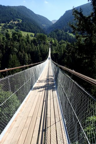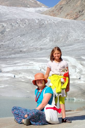 Hybaj domu, nejvyssi cas! Puvodne planovany pohodovy dojezd pozdni odpoledne vzal za sve jeste nez jsme vyjeli na dalnici. Vinu na tom ma krasna visuta lavka pres udoli Rhony hned ve vedlejsi vesnici za Fiesch (Bellwald) a pote prohlidka Rhonskeho ledovce. Clovek by neveril, jak je na te, jiste dobrych 300 metru dlouhe lavce, citit kazdy krok. Neni to zrovna prijemny pocit, kdyz se vam sto metru nad rekou houpa puda pod nohama. Eliska se nechavala slyset, ze je to hrozna nuda, Jachym byl nadsen, jelikoz to houpalo a navic okolo projizdel motoracek, ktery se nasledne ztratil v lese nad skalou na upati protejsiho kopce.