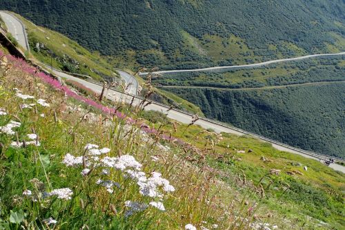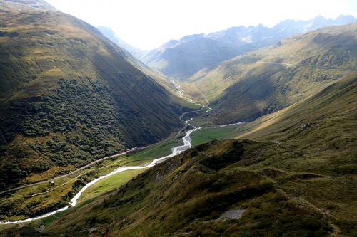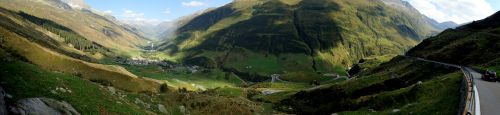 Spektakularni prusmyk Furka, kdo si jej neprojel, neuveri. Uprostred nahore Rhonsky ledovec.