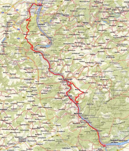 Jedeme z Koblenz do Bingen a těšíme se, co nás po cestě potká. Otík si stáhl nějakou mapovou navigaci, tak budem třeba míň bloudit :-)