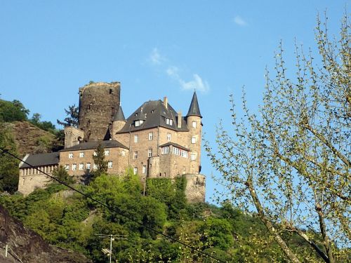 Jako číslo dva jsem zmínila Burg Katz. Je tak krásný až se tají dech. Míjeli jsme ho, když jsme sjížděli z Loreley k přívozu do St. Goarshausenu... Až jsme chěli jít na prohlídku, jenže na něm byla tabulka, že se nedá navštívit, protože je v soukromém vlastnictví. Začali jsme si snovat příběhy v hlavě, kdo si asi koupí takový skvost ze 14. století? Jsou tam očividně nová okna a v nedávné době na něm jistě probíhaly četné opravy. Ne a ne ho vyhnat z hlavy. V herberku, kde jsme si připlatili asi euro za připojení na wifinu jsme se šli zeptat strejdy Googla. No a sestřenice Wikipedia nám prozradila, že zde do roku 1989 bylo "Erholungsstätte des Sozialwerks der Bundesfinanzverwaltung" a že bylo prohlášeno kvůli chybějícímu požárnímu schodišti za nevyhovující a tím nabídnuto k prodeji. Městečko St. Goarshausen si na něj brousilo bójky, ale muselo chca nechce zamáčknout slzu. Koupil ho totiž Satoši Kosugi, který byť turistický magnát, pochází z rodiny se samurajskými kořeny. Der Spiegel psal o jeho plánech v dubnu roku 1989. Celoročně vytížený luxusní hotel s vířivkou a výhledem na lodě v nemilosrdné zatáčce, kde Loreley poslala ke dnu už tolik námořníků, se dodnes nekoná. Zbytky příjezdové cesty k hradu jsou prorostlé statnými stromy a mechem. Jen ptáci se tam hádají o slovo, jako by měli Eurovizi.