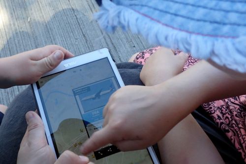 Na vyhlídku v Zeppelinheimu nás Otík vyzbrojil tabletem s aplikací Flight radar