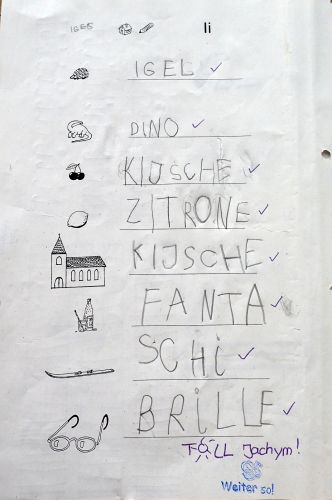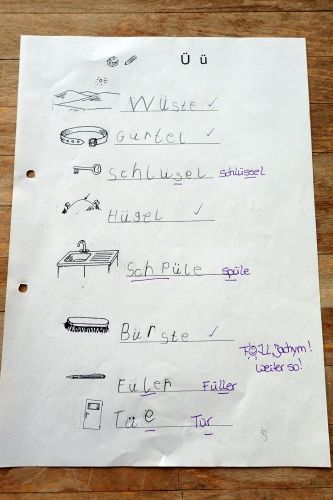 Kromě toho jsem zašila všecky, díry, nadělala záplaty a dokonce uklidila dětský pokoj- takovou chybu už nikdy neudělám! To Vám byl děs. Jak jsem se tak probírala plnými taškami ze školy, padlo mi do oka pár stránek, ze kterých na mě tryská, jaká je to dřina naučit se nějaký jazyk a to hlavně jeho psanou formu. Snažím se být statečná i já. Ti naši neposední bordeláři jsou mi velikou inspirací... Třeba i vy najdete ve fotogalerii nějaké to slovíčko, který náš prvňák zná a vy (já) ne. A hodí se o něj rozšířit slovní zásobu... :-)
