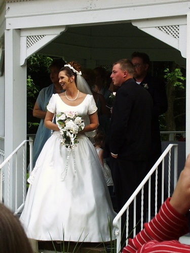 Odpoledne jsme jiz plne venovali priprave na svatbu. Zacala asi ve ctyri odpoledne. Bylo nadhene a cela se odehravala v zahradnim altanku. Nevesta mela hezouce saty, byla drobitko starsi a ma dcerusku, ktera se jako druzicka rozbrecela. Po obradu jsme si dali dobrou veceri a trsali a fotili se. Nejvic se nam libil "dollar dance", kde si vsichni svatebcane za 1 USD zatancili s nevestou nebo se zenichem.. Zenich se pri gratulovani sveril Jendoj, ze ho po sobotnim louceni se svobodou bolela hlava. Svatba skouncila v deset vecer a slo se domu spat.