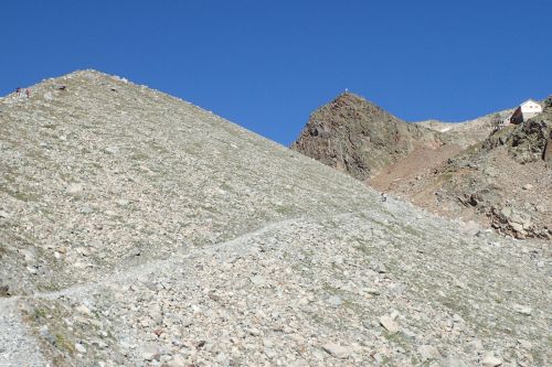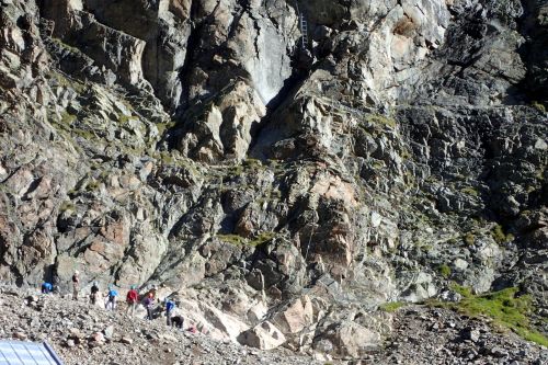 Kaunergrathütte je jedním z hnízd horolezců. Výhled na skalní žebřík ze záchodu je málo platný prostě zážitek