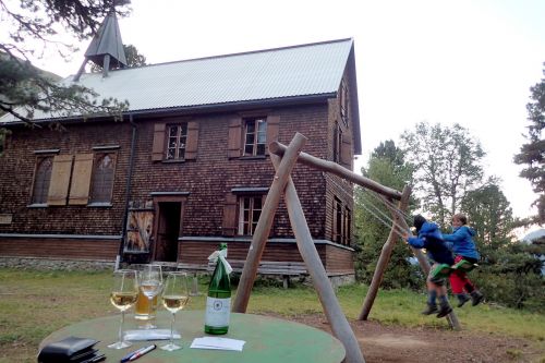 Dole u Gepatschhausu nás vítaly krávy a náš pokojíček byl v kapličce. Tomu říkám stylové zakončení naší sviští expedice.