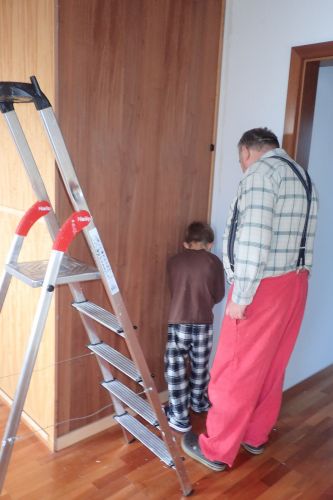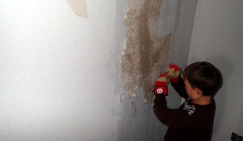 Mezi destruktivní aktivity pak počítám vyrvání jedné staré podlahy a její následné stěhování do sběrného dvora. Servání tapet, aby byla aspoň v jedné místnosti normální zeď. Pak se taky neúspěšně snažím usmrtit tůji před domem, abych jí mohla nahradit třeba japonským javorem nebo pršící sakurou nebo obojím. To bude asi ještě běh na dlouhou trať. I když má děda nějaký nápad, tak se k tomu snad o vikendu dostanem :-). On nám tady teďka totiž zase pomáhá! Aupairuje, abych mohla peklit bakalářku a randit s řemeslníkama. Dneska nám třeba pan kotelník sundal topení a v úterý příjde malíř, aby nám tu nahatou zeď, která zpodtapet vylezla omítnul, což se v těhle končinách nedělá.