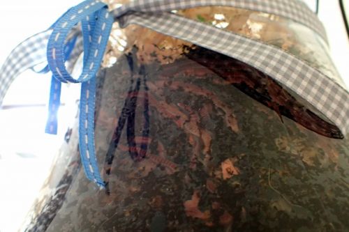 Až v neděli jsme zjistili, jak moc moc moc přemoc se jich do toho svícínku vešlo. Hrst jsme šoupli pod zmrzlý citron, který jsme pyšně zasadili doprostřed zahrádečky a fandíme mu, aby v něm sluníčko našlo poslední zbytky života. Zbytek putoval první třídou pěkně do kompostu. Tak nám držte palce, ať se jim u nás líbí a nezdrhnou k sousedom. Žádné dokumentární fotky, ale nemám. Byli jsme tak zaskočení tím, co vidíme, že nám oči přecházely a na foťák jsme si ani nevzdechli...