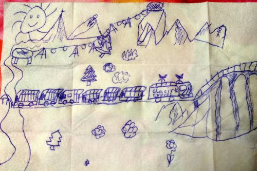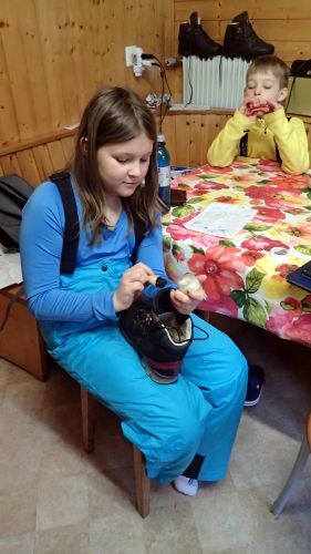 Děcka si užívala i den sněhové bouře, kdy se pustili do malování zážitků, pití švýcarského kakaa Ovomaltine a vaření karamelového pudingu doktora Proktora. Navíc taťkovi fandily při odklízení spadlého stromu ze silnice za zvuku švýcarského chrochtání z rádia o tom, jak jsou všechny cesty kvůli polomu zavřené a jak pojišťovny nebudou vyplácet žádné pojistné události ten dnešní den. Eliška napsala další kus svého příběhu na pokračování o šišce jménem Jáchym. Každý večer nám dělala autorské čtení v posteli. Chcete si ho taky přečíst???