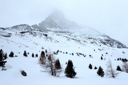 Pan domácí říkal, že do Zermattu jen za hezkého počasí. Vzhledem k logistické a finanční náročnosti jsme rádi poslechli. Koneckonců ve středu jezdily dole v údolí jen mohutné laviny, i vlaky zůstaly spinkat v depu...