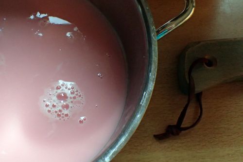 Jakmile jsem růžovou tekutinu přecedila přes platno, vmíchala jsem trochu cukru, nechala ho za občasného Promíchání rozpustit a ještě odpařit nějakou tu vodu. Uzavřené naplněné skleničky jsem nechala ještě vysterilizovat, abych měla jistotu, že se sirup nezkazí. Příště dám určitě i citrón. Lesní chuť je bezva, ale ta silně sladká chuť mi trochu vadí.