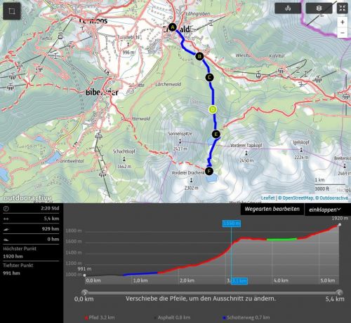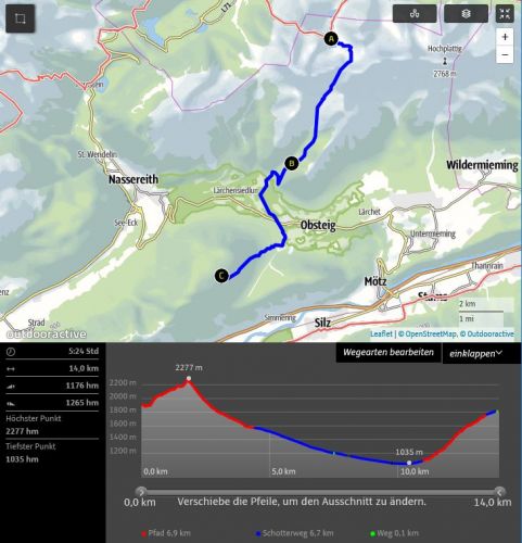 Mapa: z Ehrwaldu na Coburger Hütte po "Hoher Gang"