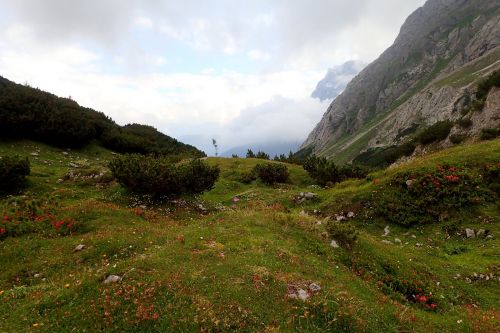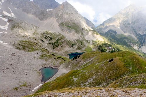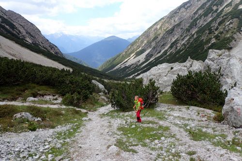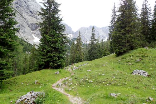 Z GaPa jsme se posunuli na rakouskou stranu kopce a do Imstu vyrazili z Ehrwaldu, což je děsně milá a útulná vesnička. Namířeno jsme měli na Coburger Hütte. Byla to krásná změna, najednou jsme šli zase sami cestou necestou... Ne že by na "Vlakovou Krajku" proudila procesí jako v Tatrách třeba, ale bylo znát, že jsme rychlostí blesku mimo hlavní trasu zájmu turistů.