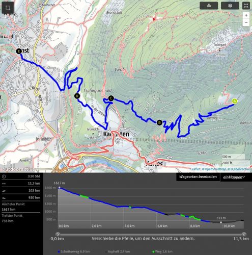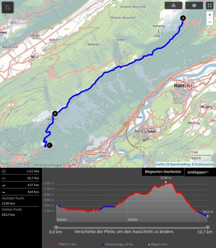 Mapa: z Karrer Alm do Imstu po úbočí Simmeringského masivu