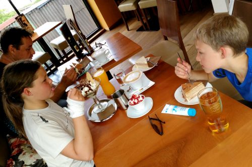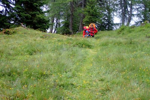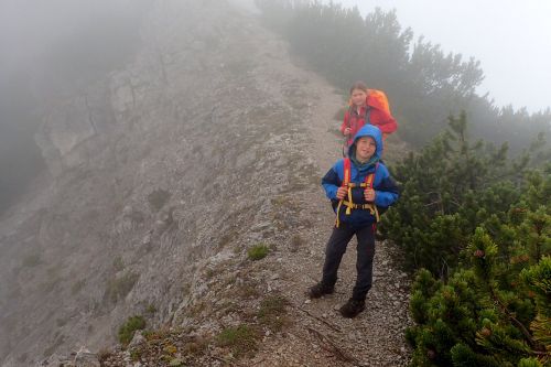 Trasu Simmeringalm Karreralm bych šla ráda ještě jednou. Je to místy opravdu náročný terén, kde by bodlo základní horolezecké vybavení. Vzhledem k tomu v jakém stavu jsme našli ocelová lana na trase částečně urvané jarními lavinami se asi jedná spíše o nějakou turistickou popelku. Za celý den jsme potkali jednoho pána v protisměru, což také naznačuje intenzitu využití této trasy... Rozhledy tu za jasného počasí musí být nádherné, ale cesta sama byla místy tak dobrodružná, že jsme si říkala, že jsou věci, které by měly děti zažívat s tátama. A mámám by se o těch dobrodružstvích mělo jen doma ve světnici vyprávět, když už se ví, že to dobře dopadlo. Ještě teď se mi svírá srdce, když si vybavím, některá místa tohoto dobrodružství.