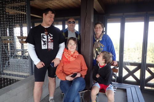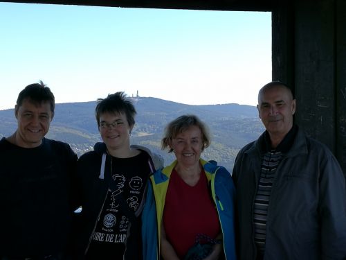 S našima na rozhledně Herzberg s výhledem na Frankfurt.