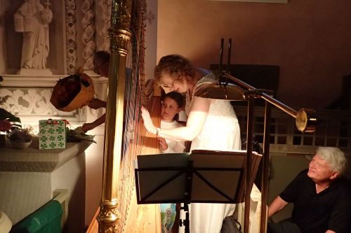 Zamilovali jsme si komorní koncerty v Hessenparku, když je léto na spadnutí. Letos nás okouzlila harfistka Rita Schäfer-Tworek. Děti lákala, ať si to jdou vyzkoušet, Jáchym nechtěl :-)