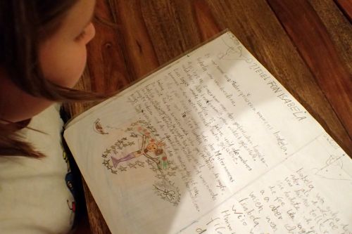 Eliška našla starý sešit z němčiny a zakřičela:" Jééé, to je úplnej začátek mého psaní, pohádka o Isabele! To si pamatuju...