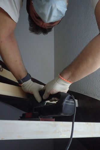 Napodzim pokryl dům ten nejjemnější prach... Otík se dal na dráhu archeologa a jal se hledat pod ošklivým nátěrem schodů dřevo. A našel, moc hezký...