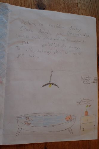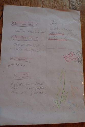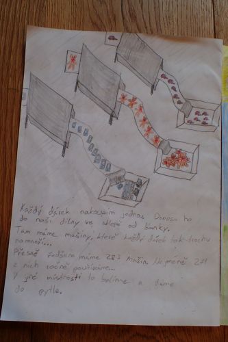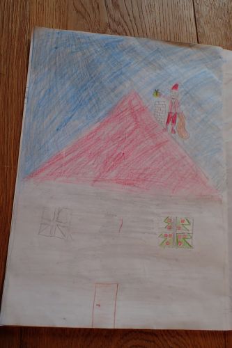 Jachym maloval celkem 3 obrazky: jak je santa na strese, jak santa leti letadlem a jak santa lezi ve vane. Ja jsem malovala: pole, namnozovaci pristroje,titulni stranu, a psala jsem.