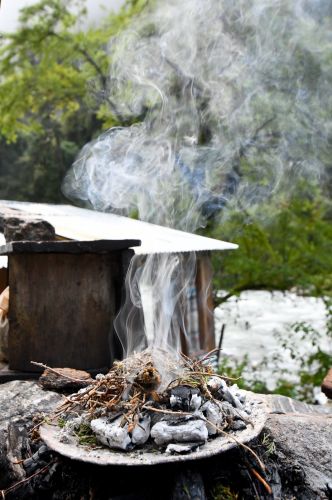 Když jsem ukazovala fotky mé japonské kámošce, usmívala se a prý, že to tam vypadá, jako u její babičky na venkově, když byla maličká. V lodžích i čajovnách mají krásná kamínka s otevřeným ohněm. Úplně jiná, než jaké známe ze skanzenů v Evropě. Vlastně je to celé putování pralesem podél divoké řeky tak trochu jako výlet do minulosti...