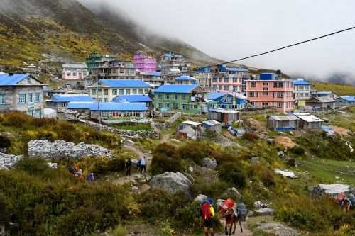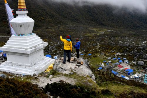 Langtang trek se dá jít třeba ze Syabru Bensi (1500 m.n.m.) a zpravidla trvá dva dny, než se vystoupá do nejvýš položené vesnice Kyanjin Gompa (3870 m.n.m.). Jsme naučení z Alp, že nám všecko trvá dvakrát dýl, takže jsme si na náš slow motion šnečí výstup naplánovali dny čtyři a bylo to tak akorát :-) Měli jsme s sebou místního průvodce Nyimu se synem Susanem a po cestě jsme se seznámili i s jeho tchýní a švagrovýma a sestřenicema a co já vím kým ještě. Na stavbě vodní elektrárny na řece Langtang (tady se snad všecko jmenuje Langtang :-), která je financována Čínou, jsme pozdravili i jeho bráchu. Údajně do obnovy infrastruktury nepálská vláda prakticky neinvestuje, takže za drtivou většinou staveb nových mostů, silnic apod. po ničivém zemětřesení stojí vláda čínská. Dokonce v den našeho odletu přiletěl čínský prezident jednat o podepsání kontraktu mimo jiné na stavbu železnice mezi Čínou a Nepálem, což prakticky paralyzovalo celé hlavní město a to se promítlo do 8 hodinového zpoždění našeho zpátečního letu. Čínské investice v místních vzbuzují strach. No jo, Nepálci se asi bojí právem, můžeme jen doufat, že neslavná (nedávná) historie Tibetu se v Nepálu nebude opakovat!