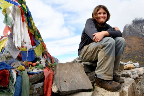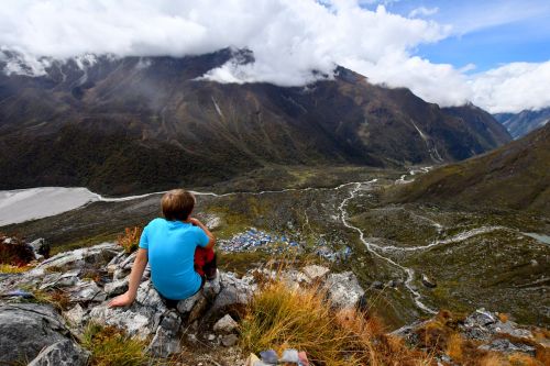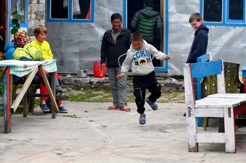 Poprvé pokořená výška 4000 m.n.m. a spánek v 3870 m.n.n. v některých z nás vzbuzoval respekt (a Otík to nebyl). Při večerním tlachání u kamen o záchranné akci vrtulníkem do Kátmándú Jáchymovi vzrušením jiskřily oči a začal se nenápadně vyptávat na příznaky "výškovky"... Byla jsem to ale já, kdo odpadl na kdo ví co, jako první. Ráno mě třeštila hlava a přehříval se mi termostat. Místo výstupu na nedaleký vrchol Kyanjing Ri jsem si objednala Big pot čaje a zavrtala se zpátky do spacáku. Eliška s klukama vystoupala na první vrchol, kde už s třeštihlavem na kluky počkala zatímco oni si vyšlápli na druhý vrchol 4.770 m.n.m.