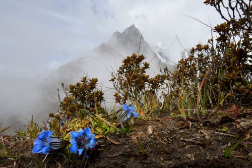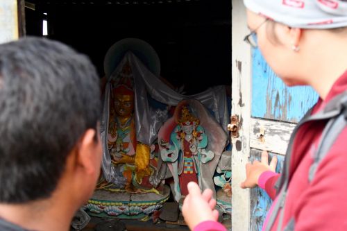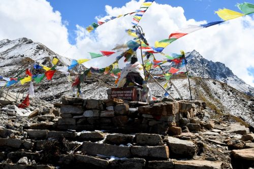 Buddha na Laurebina peak (4200 m.n.m.) sleduje tůristy, kteří se z posledních sil plazí nahoru