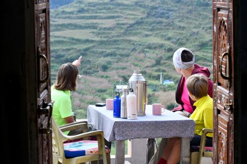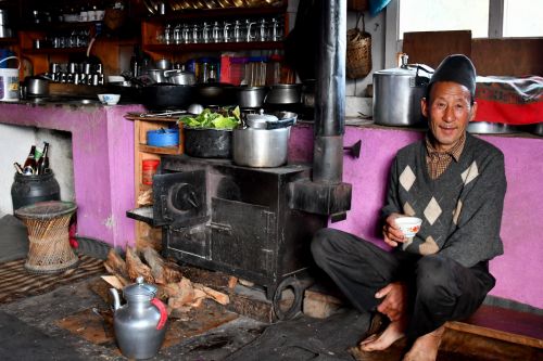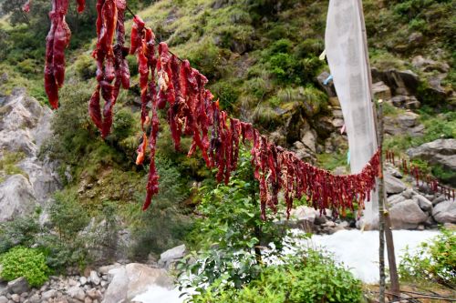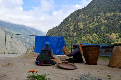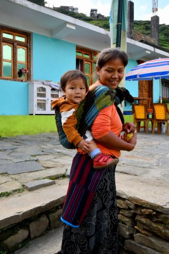 V Nyimově hotelu v Thulo Syabru jsme se měli báječně. Zůstali jsme několik dní a chodili na výlety nalehko, protože náš předběžný plán dojít na posvátná jezera Gosaikund se stal marodícím zdržením a naším šnečím tempem nerealizovatelný. Otík si s Nyimou ale vyběhl alespoň na Laurebinu (4.200 m.n.m.) a zpět a mohl se vracet domů s dobrým pocitem, že si nakonec přecijen hezky máknul. My se zatím vrhli do nauky místních textilních řemesel, což zase ukojilo mé kulturologické potřeby :-). Pokecaly jsme se švagrovou o minulosti a budoucnosti a o životě a tak. :-)