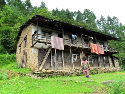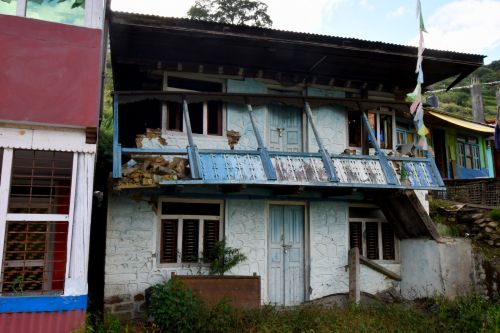 Thulo Syabru. Když tu byla na jaře ČT, pan domácí pletl košíky...